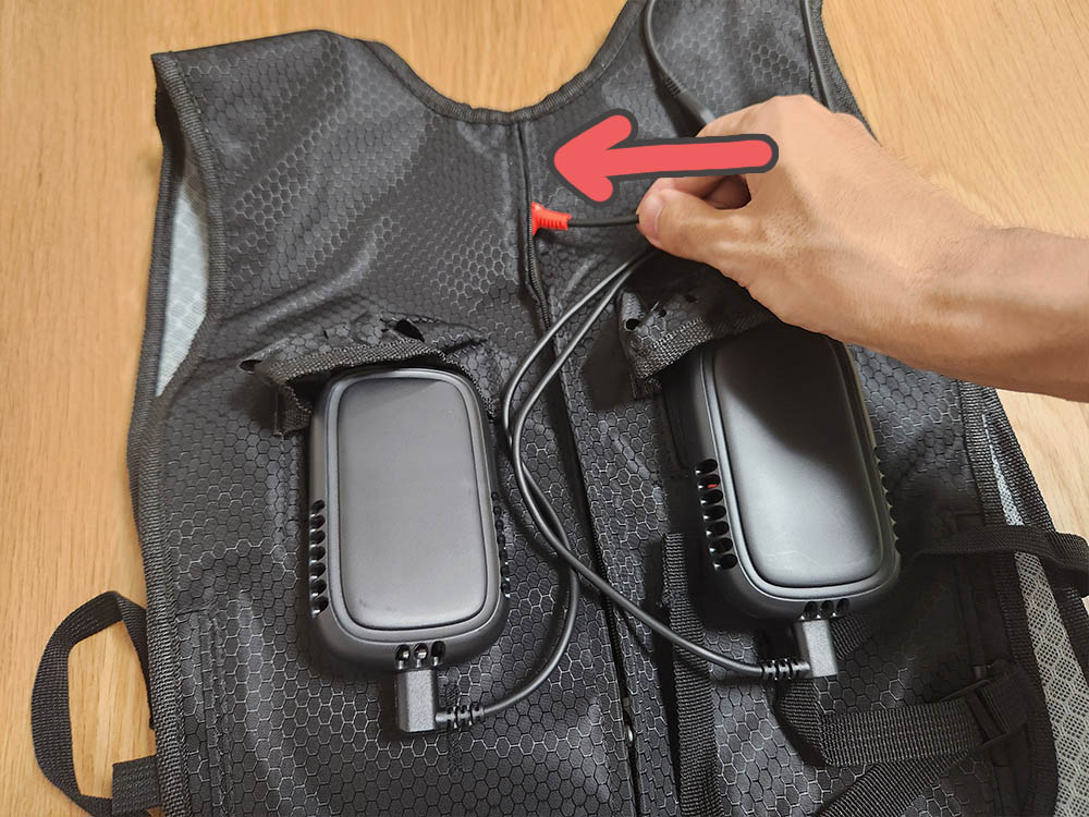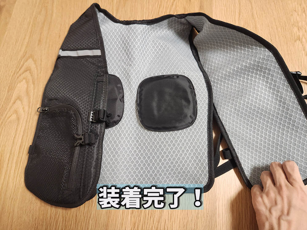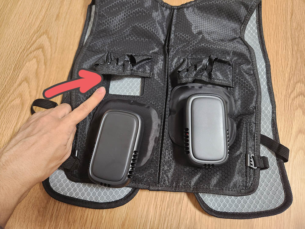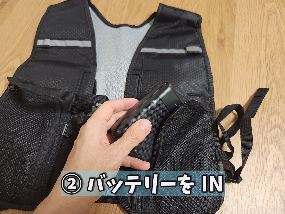 それでは、実際にバッテリーと冷却パッドをベストに取り付けてみましょう。
