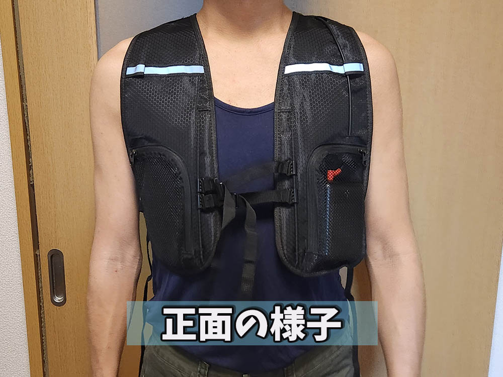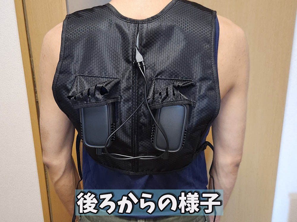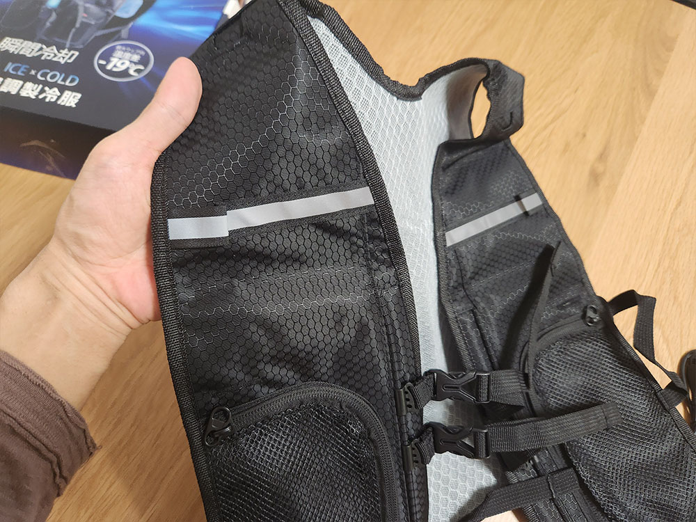 冷却パッドを付け終わった後のベストは、こんな感じです。