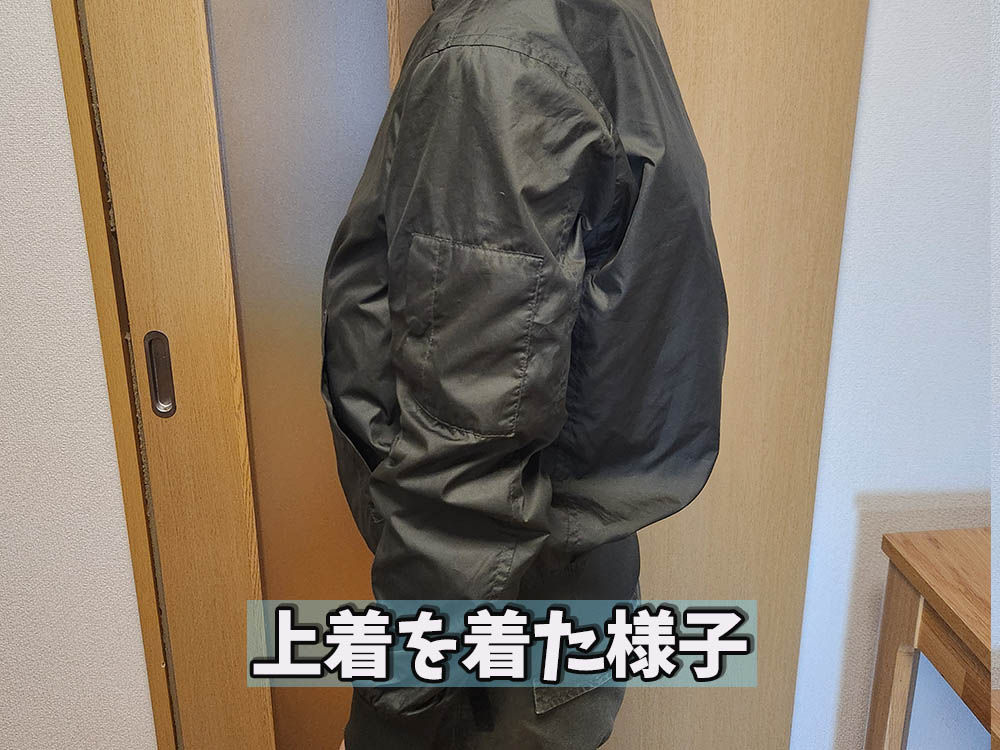 作業中はこの上に作業着的な上着を羽織ると思うので、今回は薄めの上着を羽織ってみます。