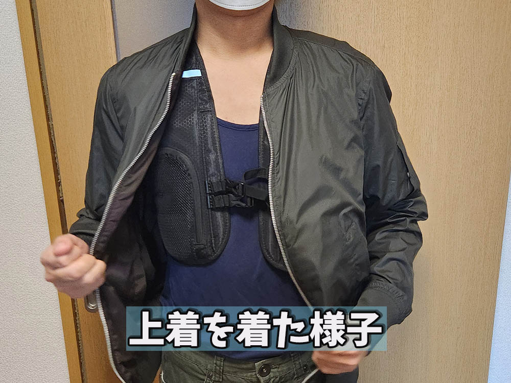 バッテリーは胸のあたりに来るので上着を着ていても操作は簡単です