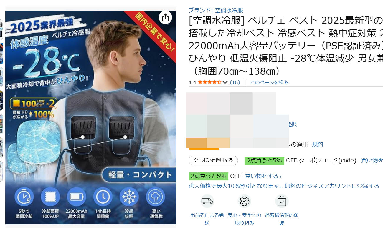 まず最初に紹介するのはこちらペルチェ式ベストです