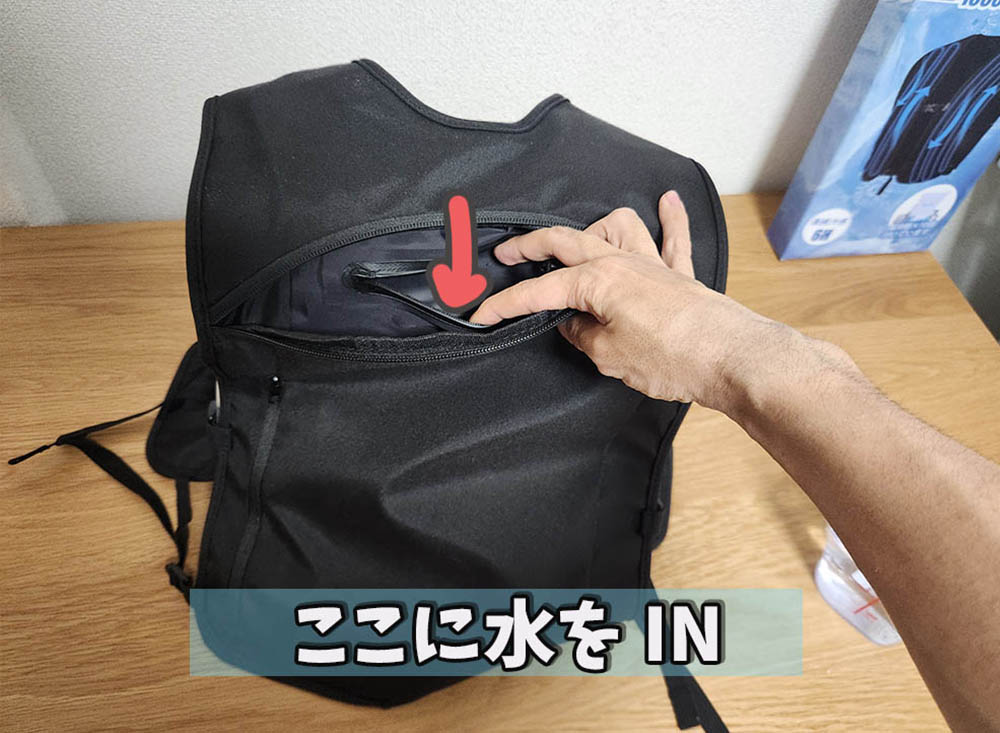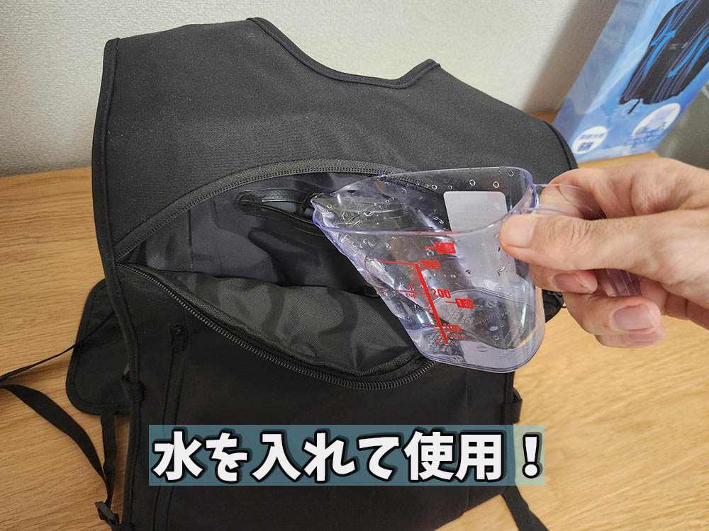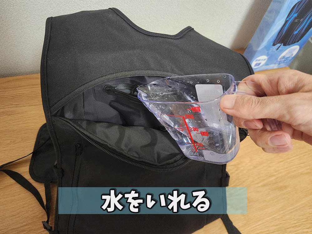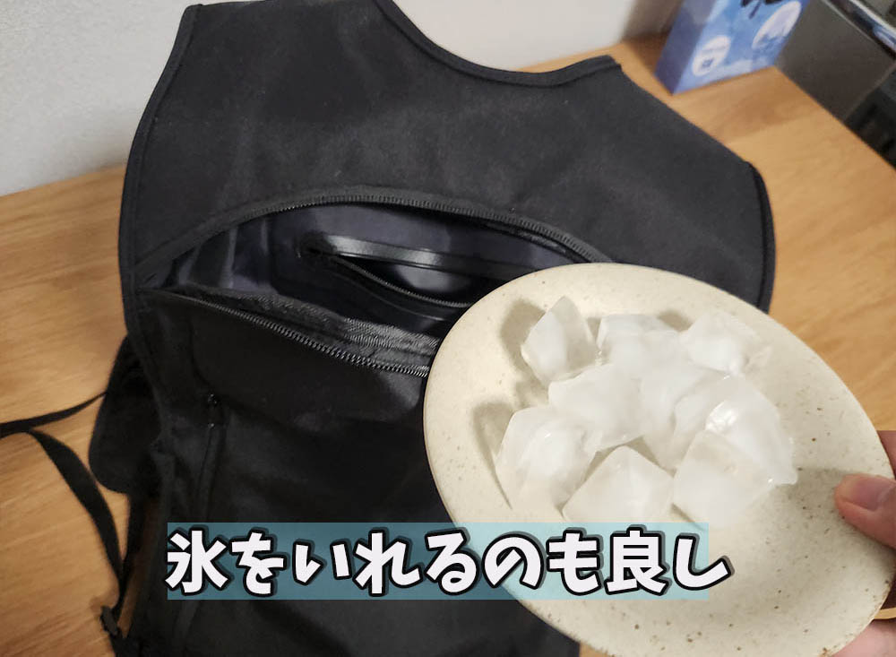 こんな感じで製品の中に水や保冷剤を入れて使用します
