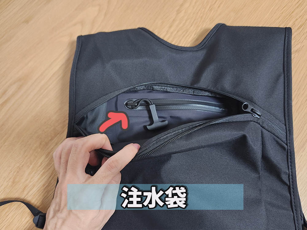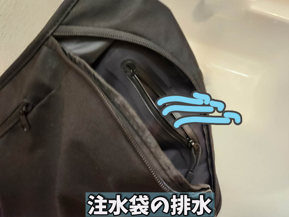 これをあけるとさらに中にポケットがあります。こちらが注水袋があります。
