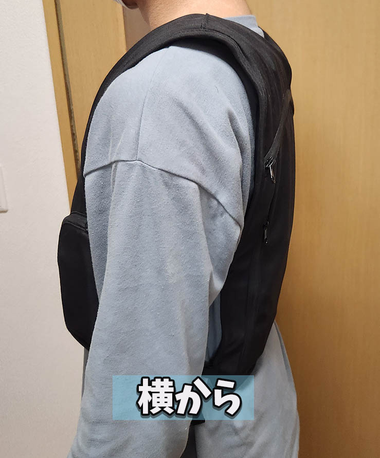 ジャケット的なウェアなので体のカバー範囲は部分的で、全面でいうと方から両胸の横当たりがカバーされています。