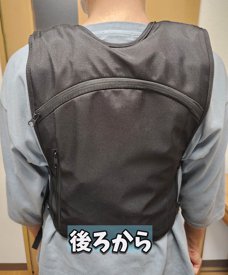 ベストのように服の上に着る製品なので色やサイズの選択はなくフリーサイズ一択の販売となっています。