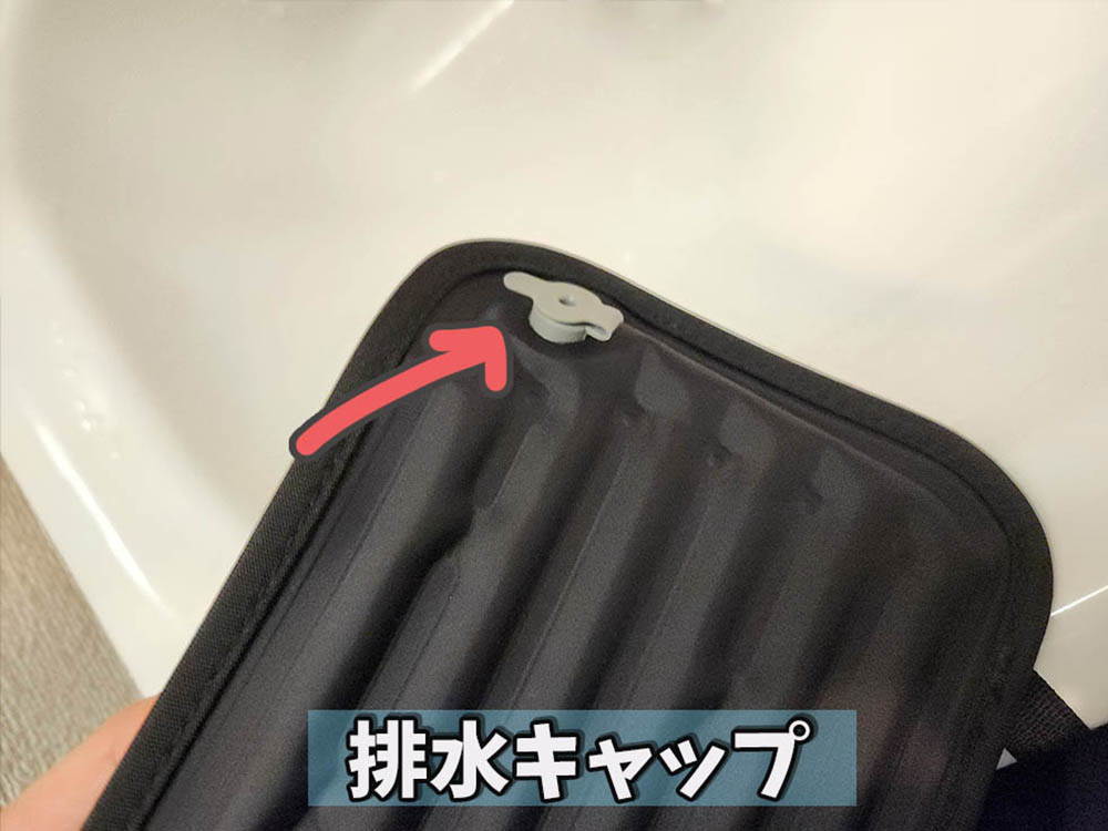 あとはケーブルの中を伝って本体全体にめぐっている水はこちらのキャップから排水できます