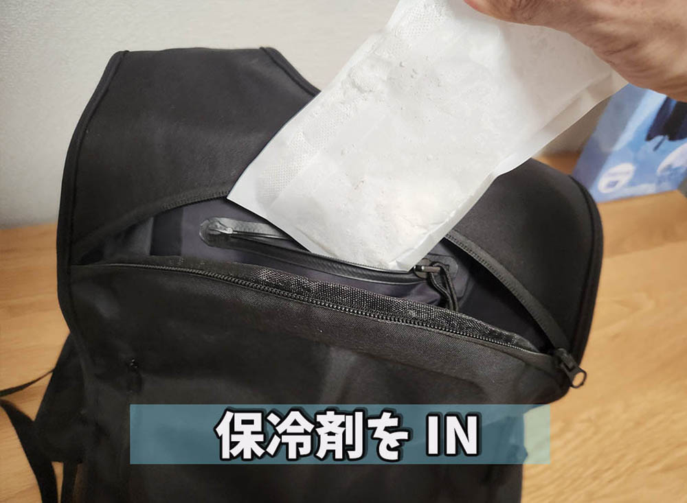 そしてあらかじめ冷やしておいた保冷剤を投入