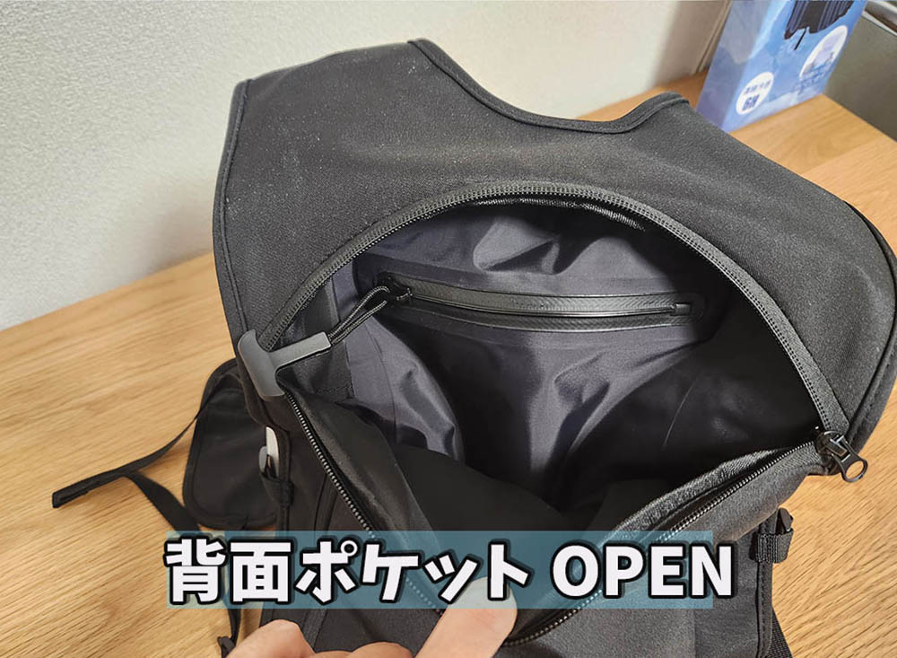 バッテリーはしっかりポケットにいれてチャックをしめておきましょう。