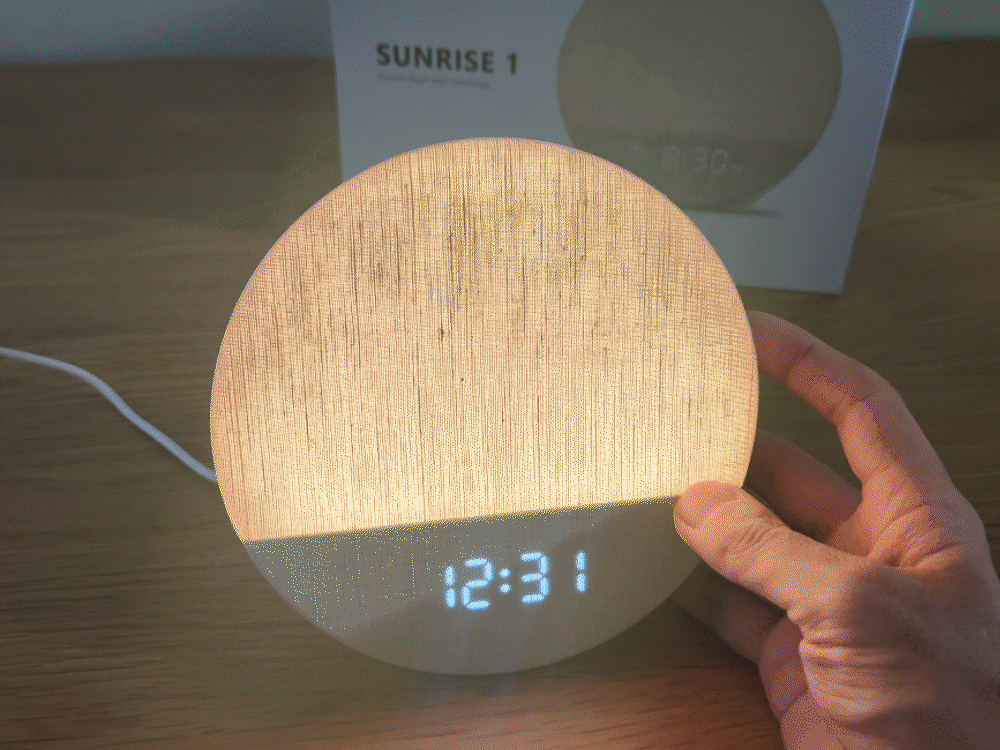 今回はホワイトノイズマシンとして注目していますが、こちらの製品は時計表示やタイマー、目覚まし機能も備えており、光と音で起こしてくれる多機能目覚ましという側面もあります。