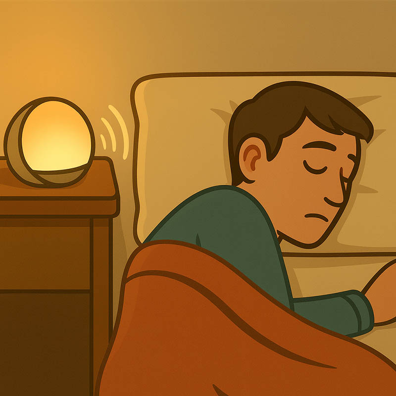 あとは照明機能付きならではの使い方として、寝る少し前から部屋を暗くしてこの機械の灯りだけで少し過ごすという使いかたもできます。