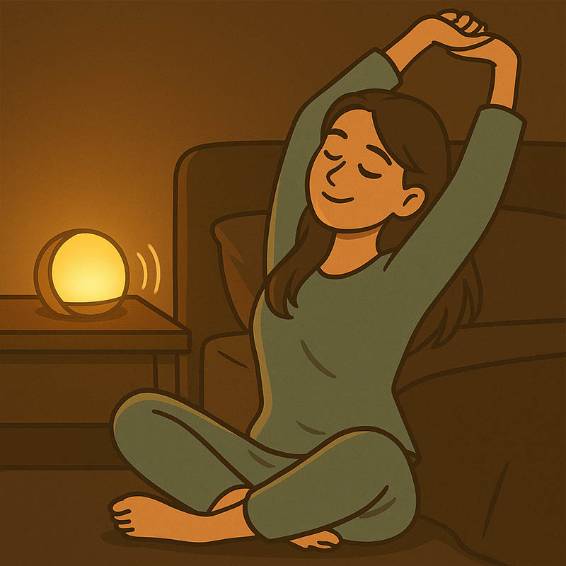例えばこの灯りだけにした状態で白湯を飲んで落ち着いたりとか、あとはストレッチしたりしても良さそうです。