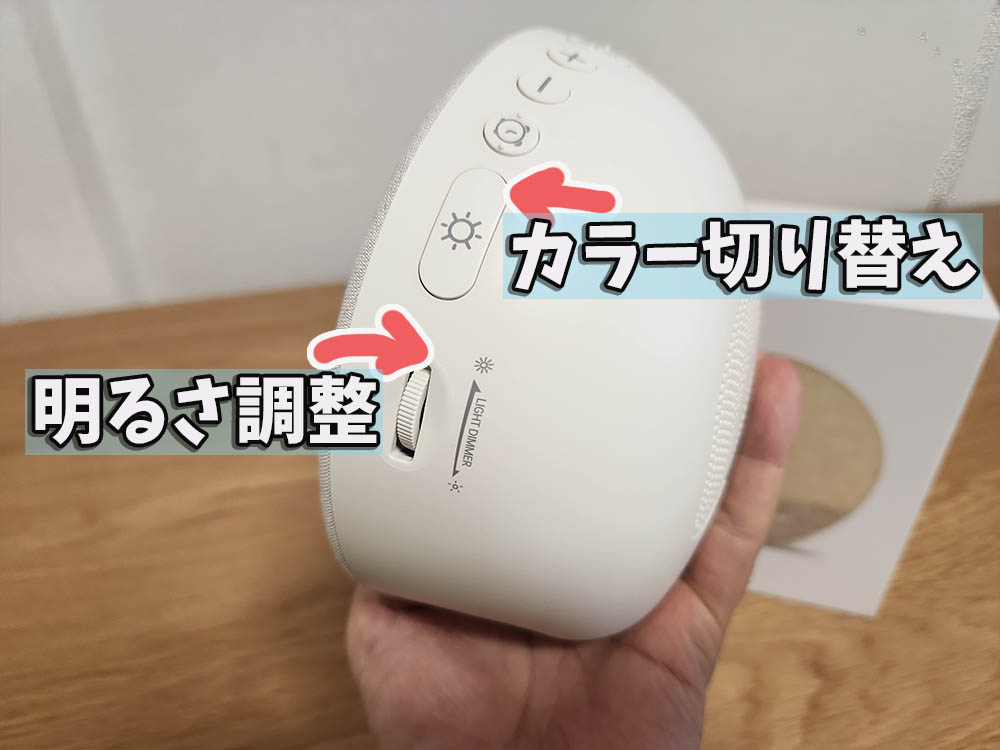 こんな感じでLED照明機能はホワイトノイズとの相性がとてもよかったです。私みたいにリラックス空間のイメージを強く持ちたい人にはピッタリでした。