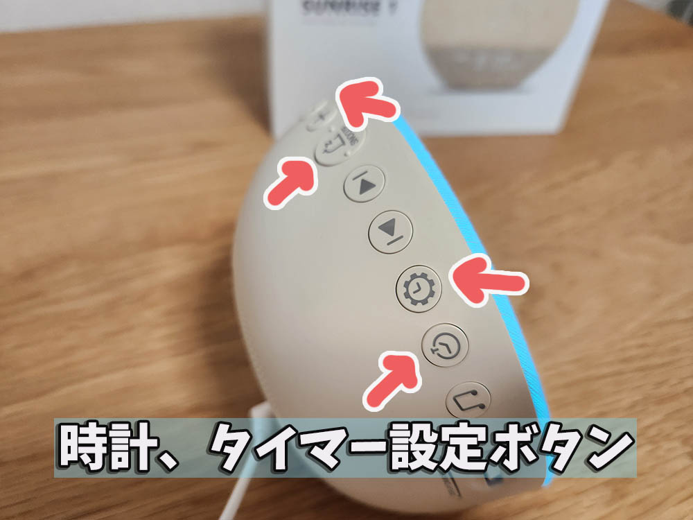 あとはこの時計っぽいボタンでタイマー、目覚ましの設定ができるのですが長くなってしまうので詳細は割愛します。